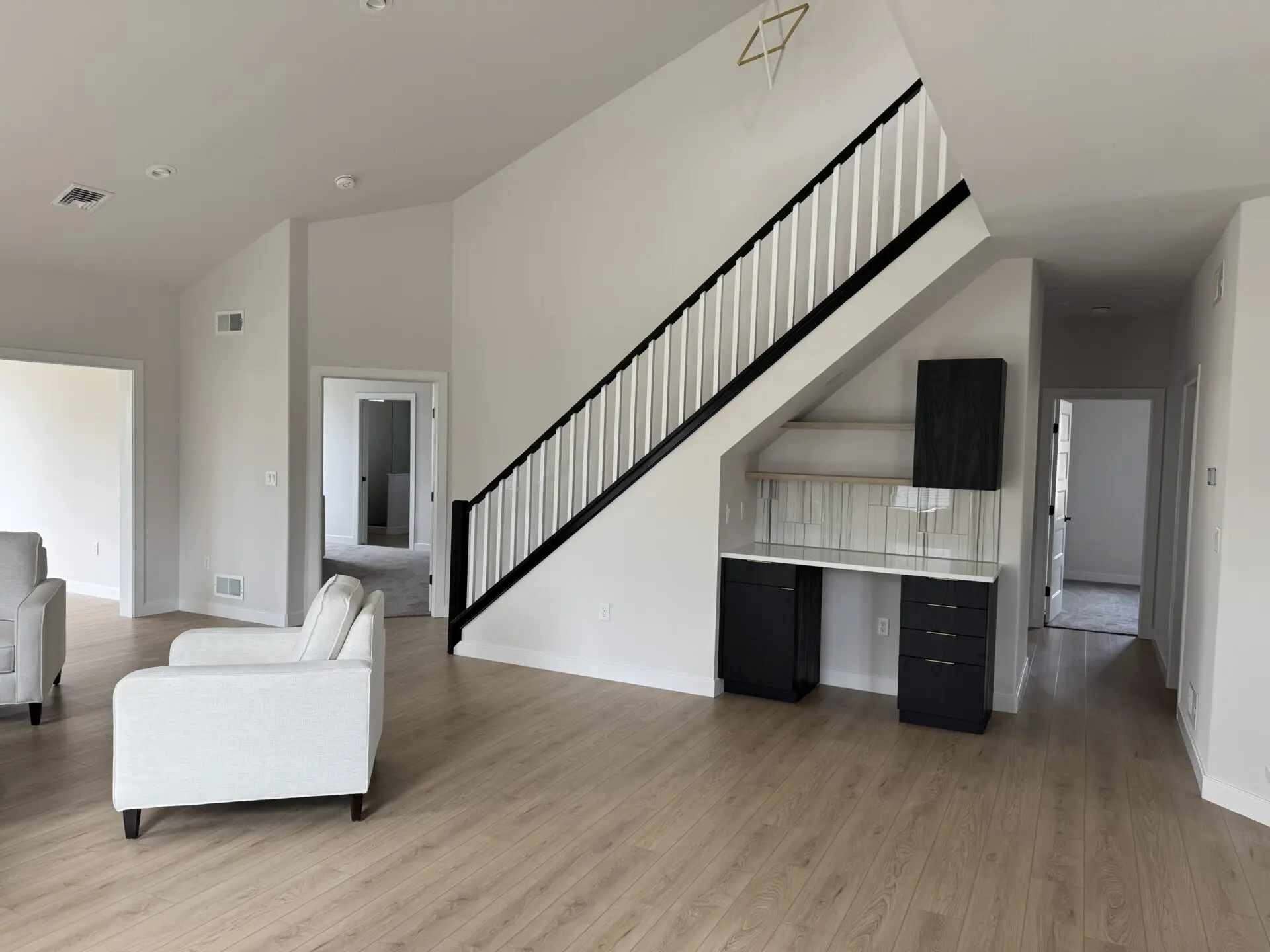 A staircase is more than a way to get from one floor to the next — it’s one of the most visible design statements in your home. At Alden Homes, we craft stairs and railings to complement your style, whether that’s the warmth of stained wood treads with traditional turned balusters, the sleek simplicity of a modern minimalist design, or something uniquely your own. Custom built-in lighting can be integrated directly into your staircase for an added touch of luxury, creating a stunning focal point that’s as functional as it is beautiful. Browse our gallery to see the range of styles and finishes available, and let us help you design a staircase that makes a lasting impression.